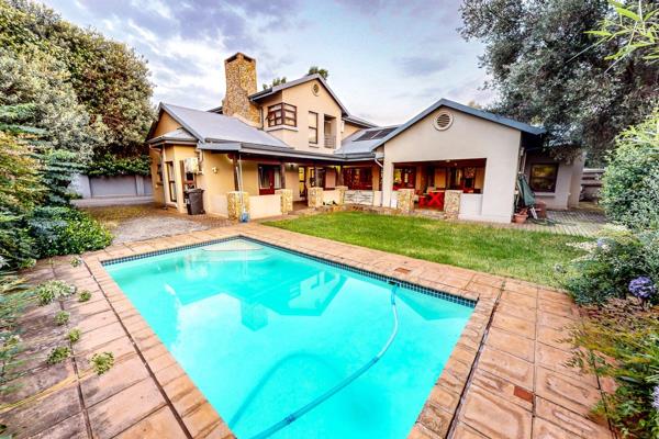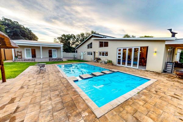 Outdoors, the property continues to impress. A large, established garden with mature trees creates a rare sense of tranquillity and space. A sparkling swimming pool, lapa with pizza oven, and multiple patio and chill areas make this home an entertainer’s dream, while a borehole ensures sustainable garden and water management year-round.